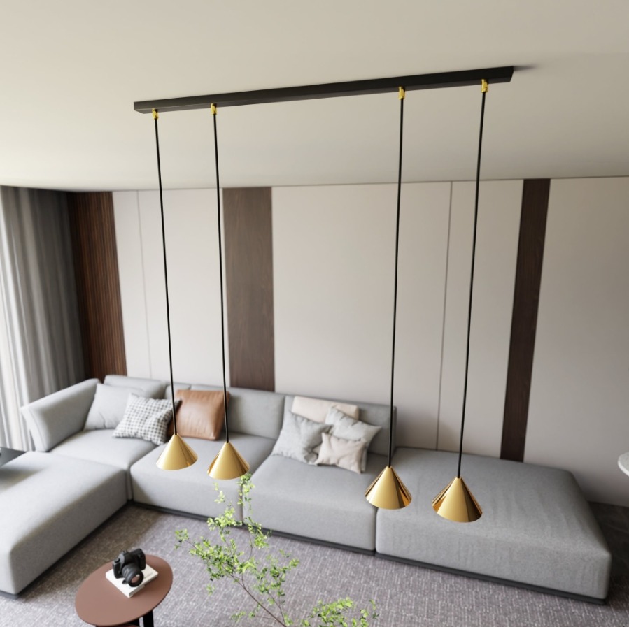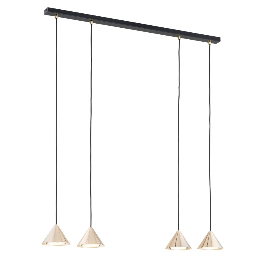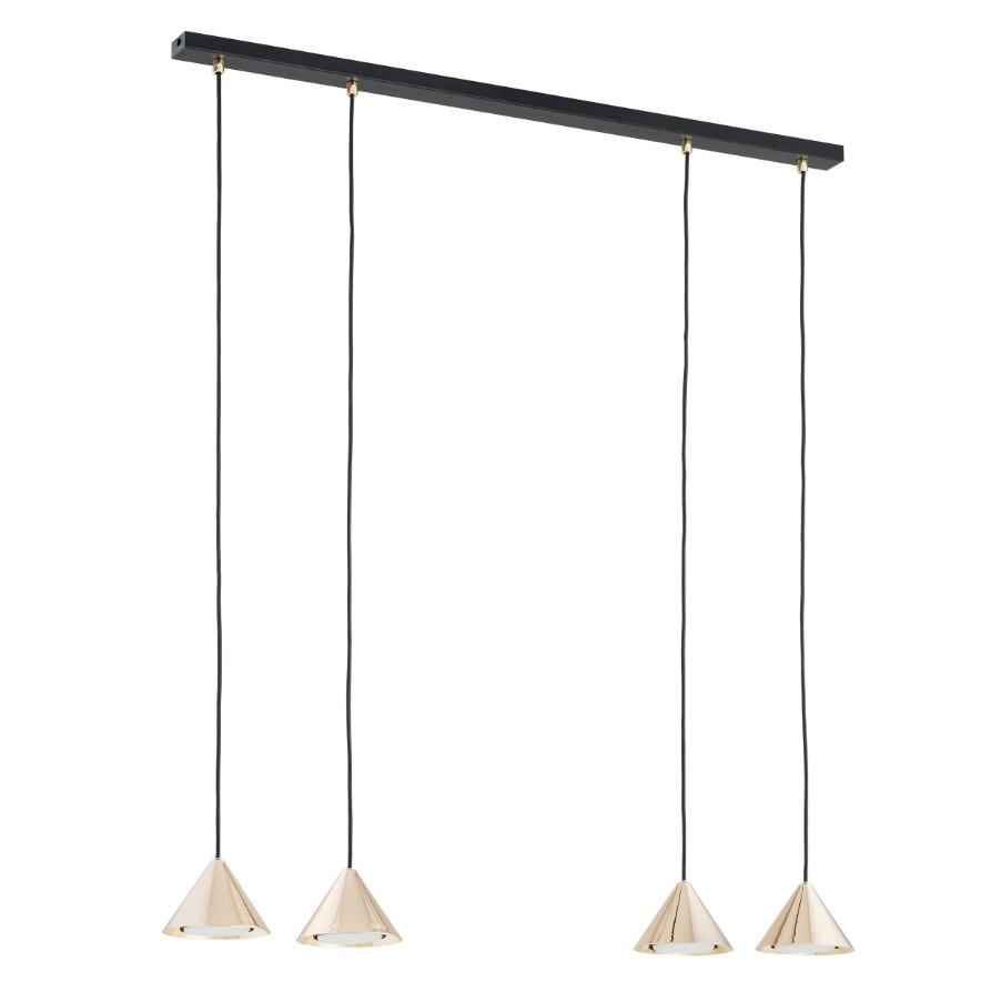 Czarny żyrandol Hermes 4 - stożkowe klosze i opalowe kule