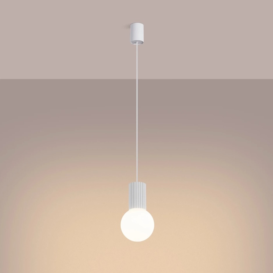(0)Biała lampa wisząca Halo Sollux - ryflowany korpus