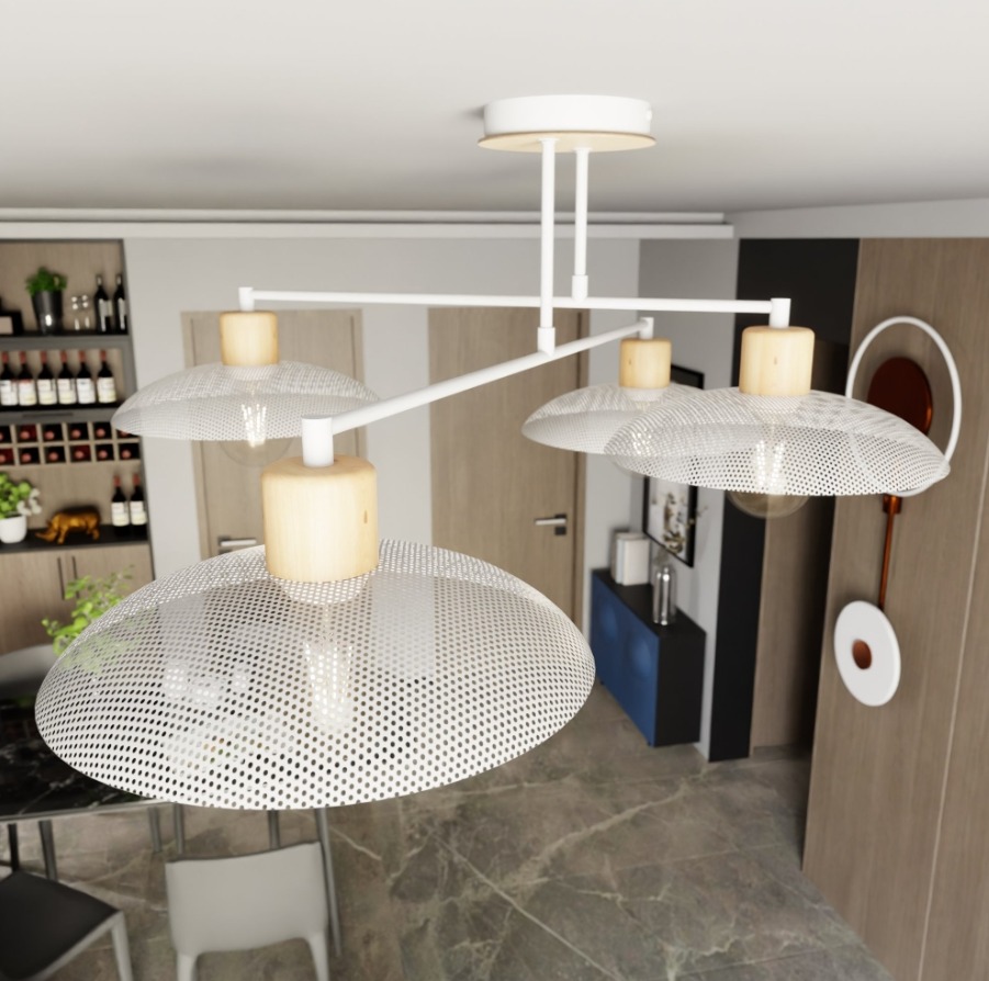 (0)Biały nowoczesny żyrandol Kobe 4 - cztery perforowane metalowe klosze