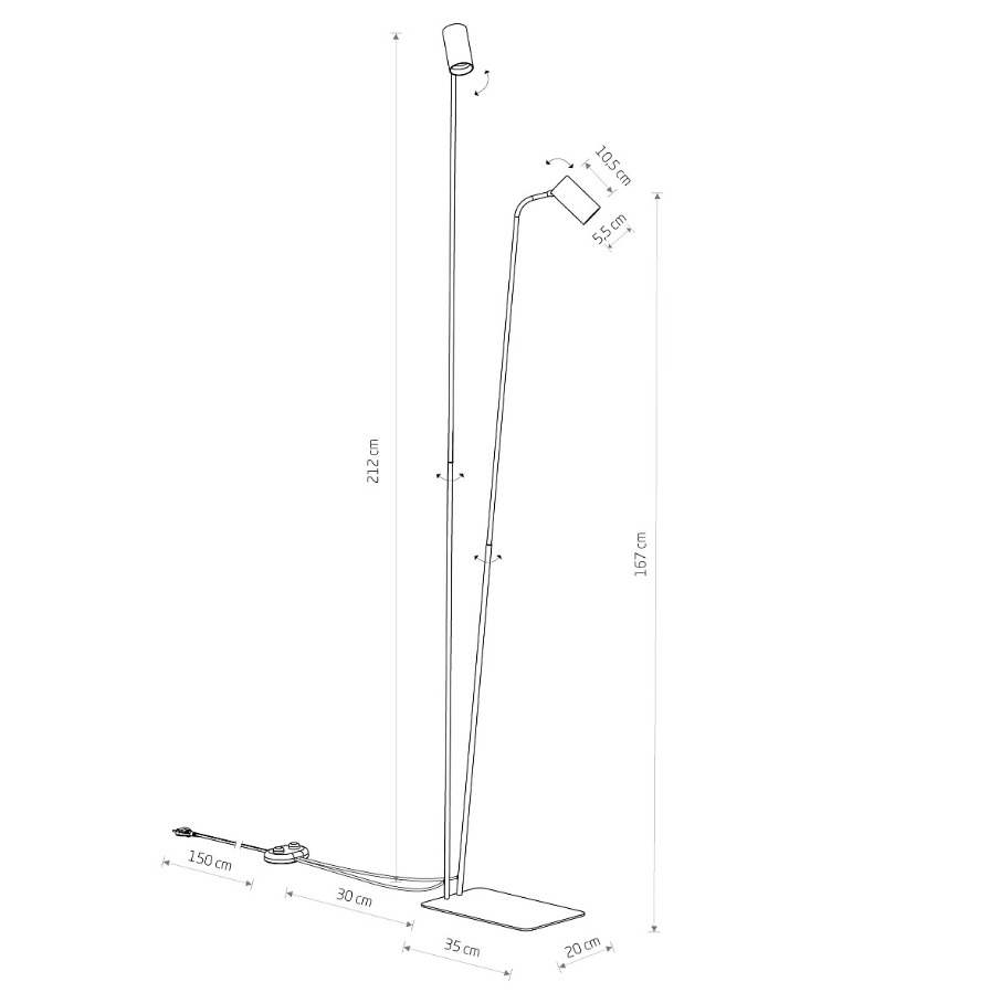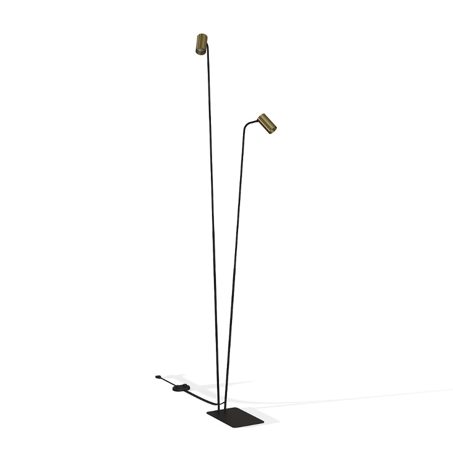 (0)Czarna lampa podłogowa Mono II - złote regulowane reflektory