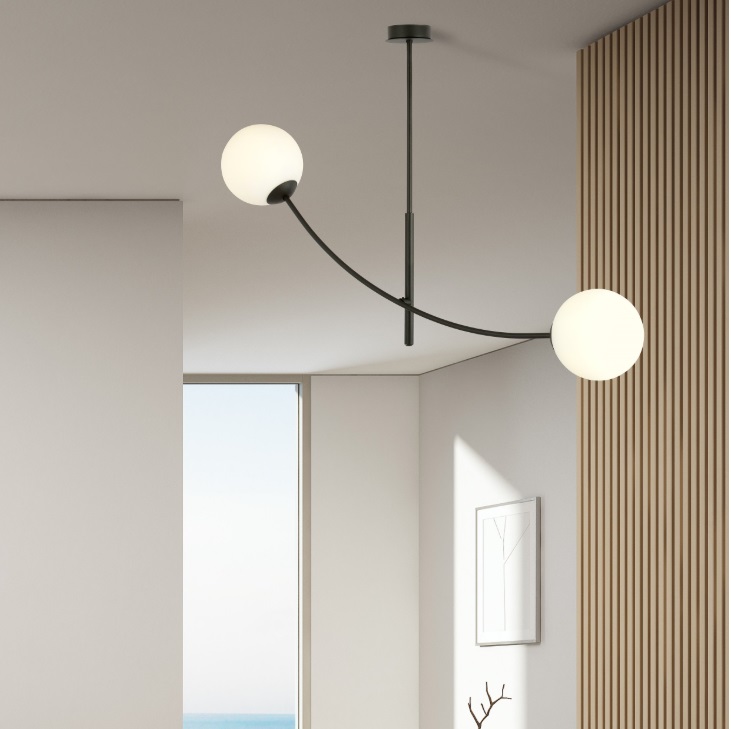 (0)Czarna lampa sufitowa na łuku Hunter 2 - szklane kule