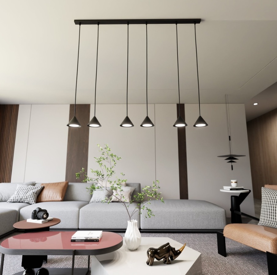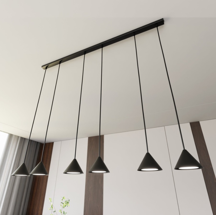 (0)Czarna lampa wisząca Elit 6 - minimalistyczne klosze stożki