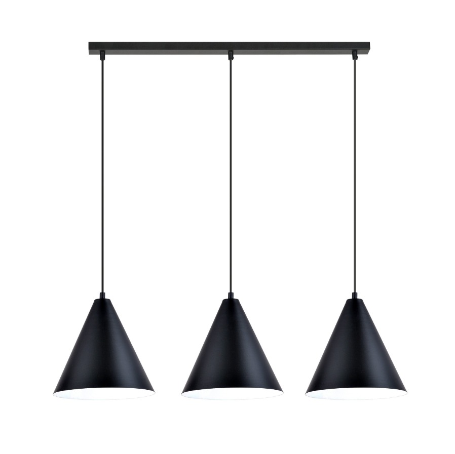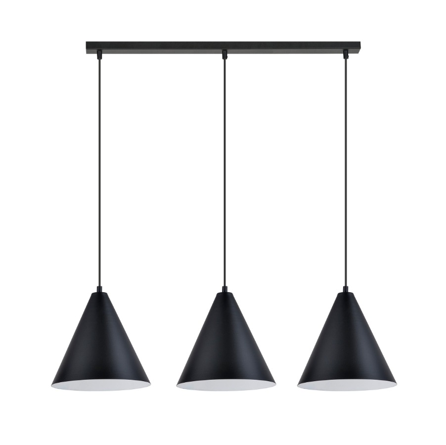 (0)Czarno-biała lampa wisząca Rebel 3 - potrójny zwis stożkowy