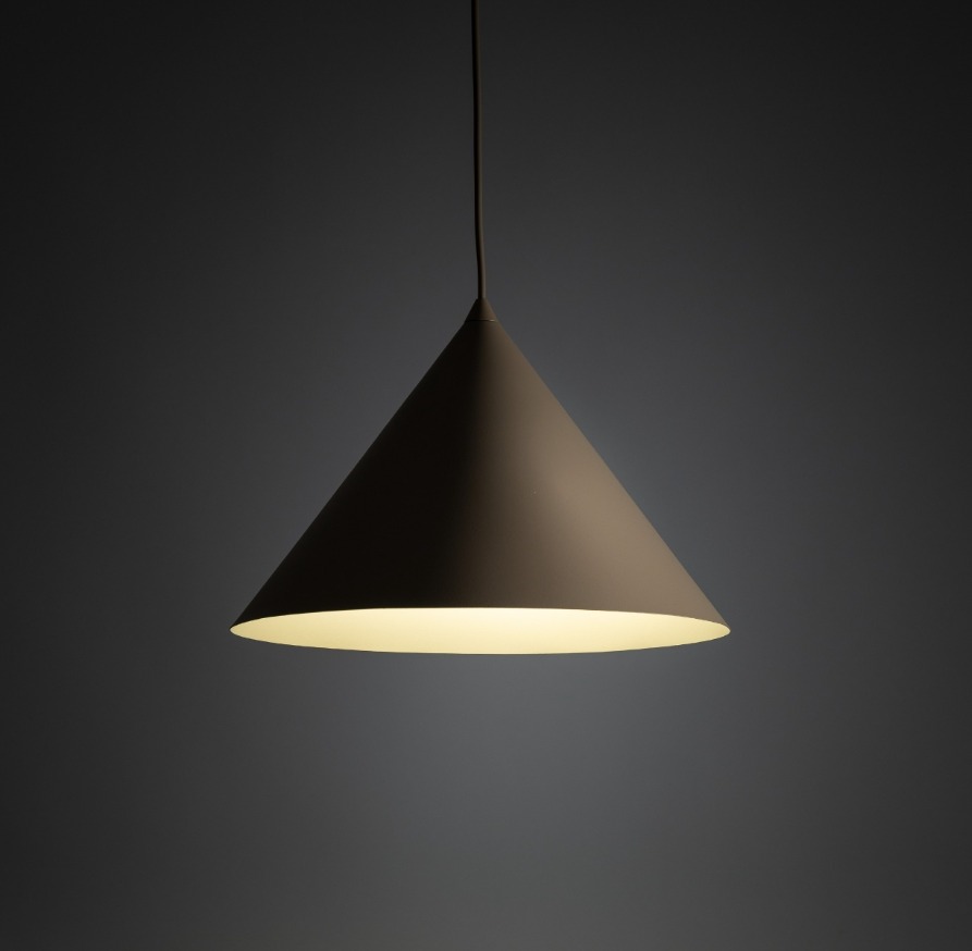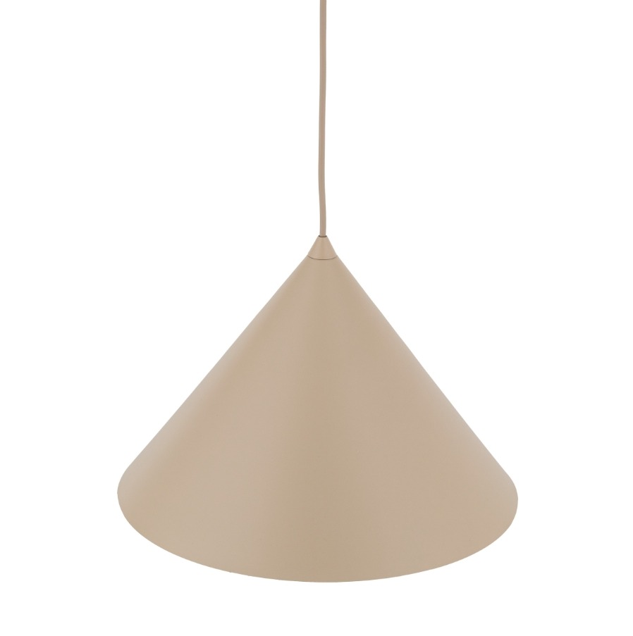 Lampa wisząca Cono L ma metalowy klosz w kształcie stożka i jasny piaskowo beżowy odcień (sabia) który ociepla aranżację i pasuje do drewna betonu oraz jasnych tkanin. Dobrze sprawdzi się nad stołem w jadalni nad kuchenną wyspą albo jako wyraźniejsze światło w salonie i w przestronnym holu.