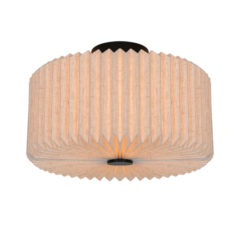 Plafon Vivienne 40 to efektowna lampa sufitowa w stylu boho z plisowanym, materiałowym kloszem o dekoracyjnej strukturze. Subtelnie rozproszone światło podkreśla fakturę tkaniny i tworzy ciepły, klimatyczny efekt we wnętrzu. Idealnie sprawdzi się w sypialni, salonie lub przedpokoju jako przytulne, dekoracyjne oświetlenie.
