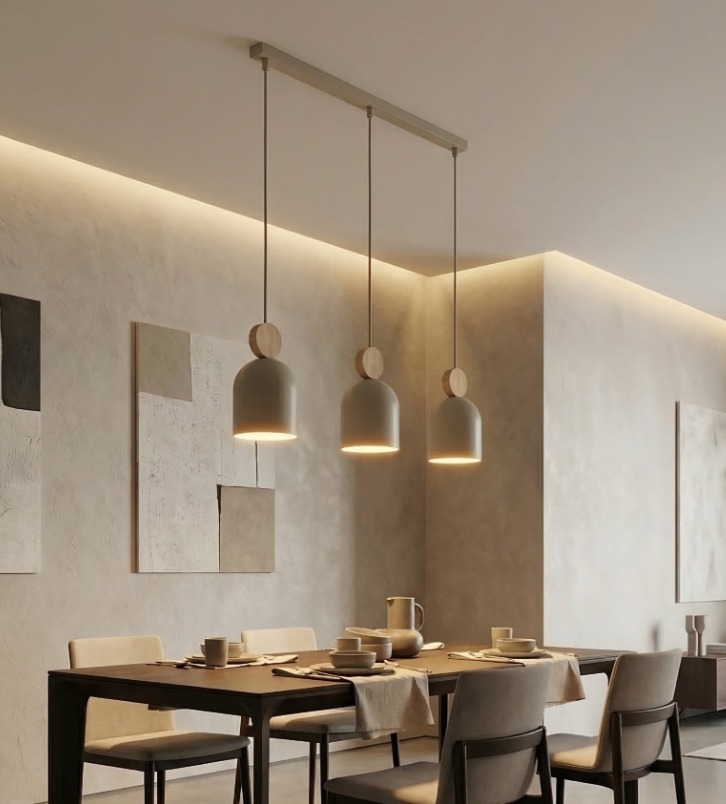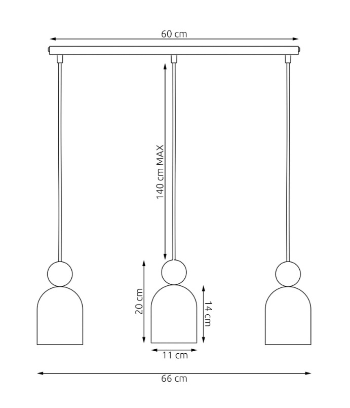 - Trzy kapsułowe klosze zawieszone w jednej linii: odpowiedni wybór nad stół wyspę lub dłuższy blat