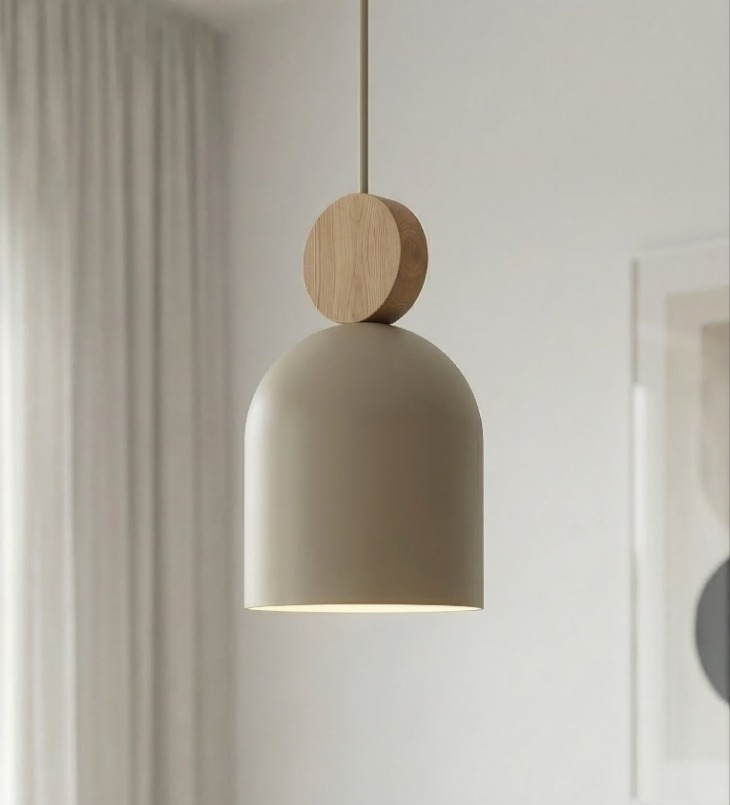 (0)Lampa wisząca do kuchni Mesi 3 beżowa z drewnem - potrójna