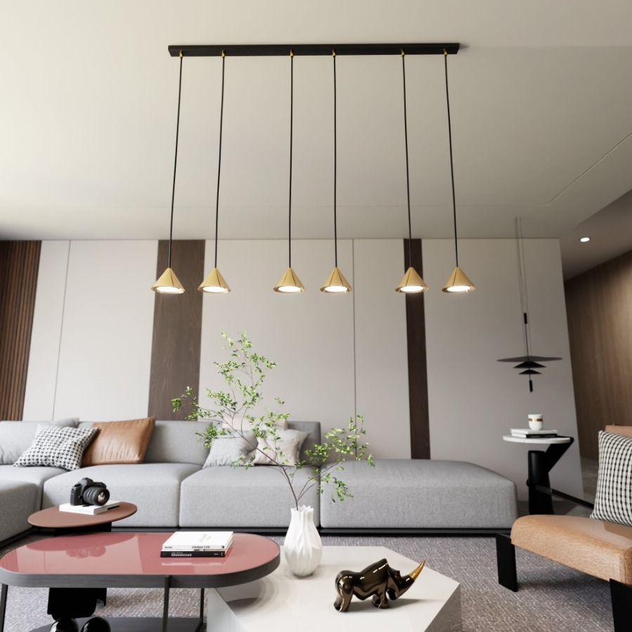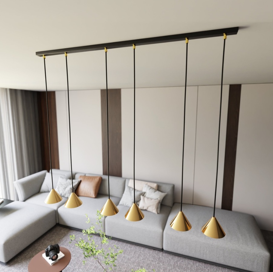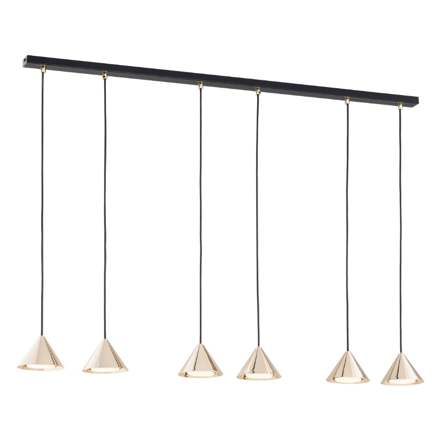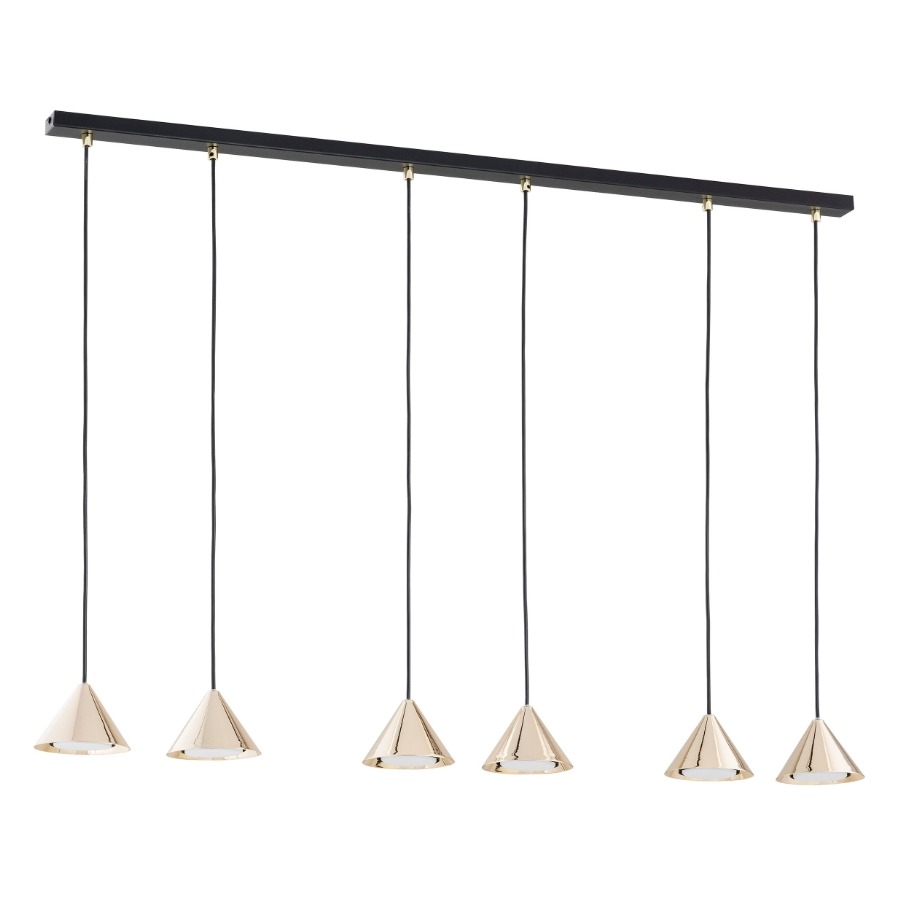 (0)Lampa wisząca Elit 6 nad wyspę - złote klosze stożki