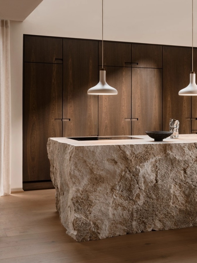 (0)Metalowa lampa wisząca nad blat Fuji beż - drewniany detal