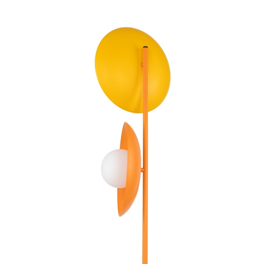 Nowoczesna lampa podłogowa Slate posiada dwa żółto-pomarańczowe tarcze, które wnoszą do wnętrza dużo energii. Dwie opalowe, szklane kule dają przyjemnie rozproszone światło, które ociepla przestrzeń i nie męczy wzroku wieczorem. Postaw ją przy sofie albo w pustym narożniku, a od razu zrobi w pomieszczeniu mocny, dopracowany akcent.
