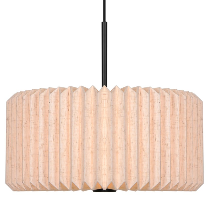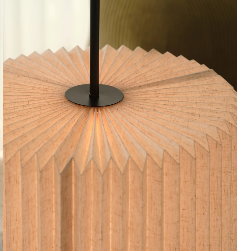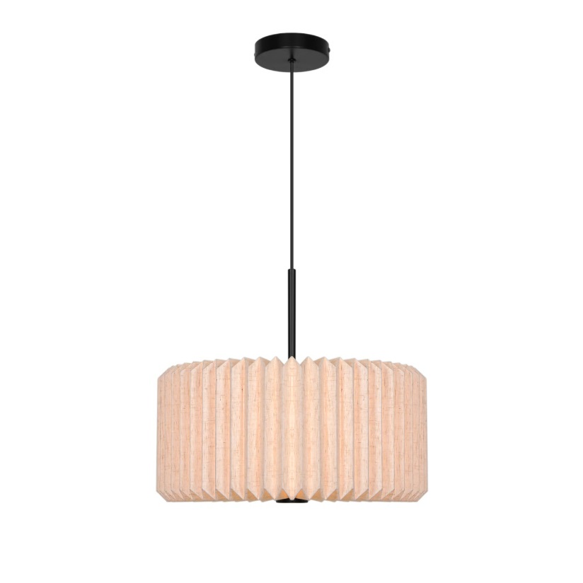 Lampa wisząca Vivienne 40 to elegancka oprawa w stylu boho z beżowym, plisowanym abażurem o wyrazistej strukturze. Materiałowy klosz miękko rozprasza światło, tworząc przytulną atmosferę w salonie, sypialni lub jadalni. To dekoracyjny element, który łączy naturalną estetykę z nowoczesną formą.
