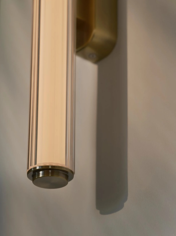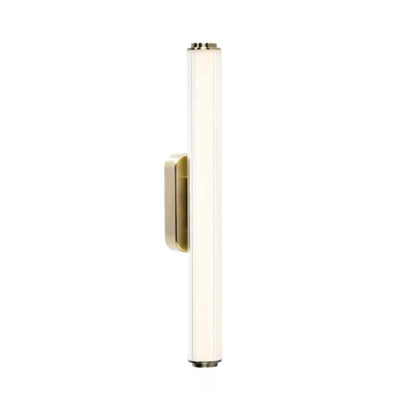 Podłużny kinkiet Virelle 50 LED w kolorze złotego mosiądzu to elegancka oprawa z ryflowanym kloszem, która zapewnia komfortowe oświetlenie przy lustrze.Dzięki klasie szczelności IP44 kinkiet doskonale sprawdzi się w łazience.