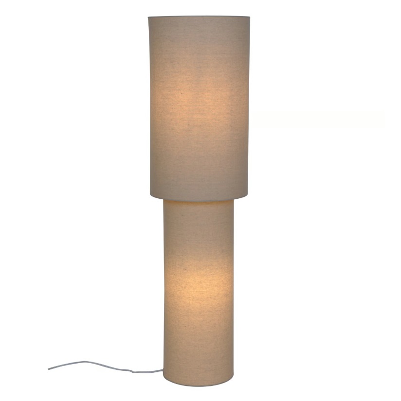 Beżowa lampa stojąca Izara 110 to elegancka oprawa wykonana z lnianej tkaniny, która tworzy przytulny klimat we wnętrzu. Cylindryczna forma i stonowany kolor sprawiają, że doskonale pasuje do salonu, sypialni lub strefy relaksu.