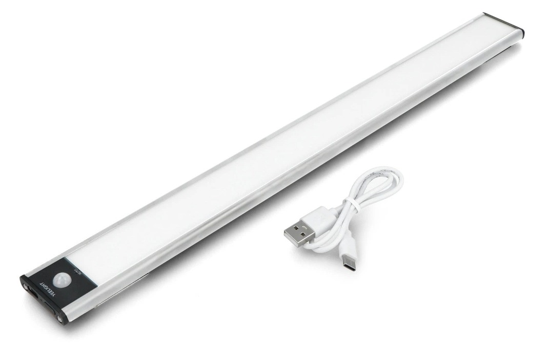 Srebrna lampka do szafy Closet Light 40 cm to listwa, którą łatwo schować w szafie, garderobie albo zamontować na ścianie. Świeci ciepłą barwą 2700K, a jasność możesz dopasować do potrzeb.