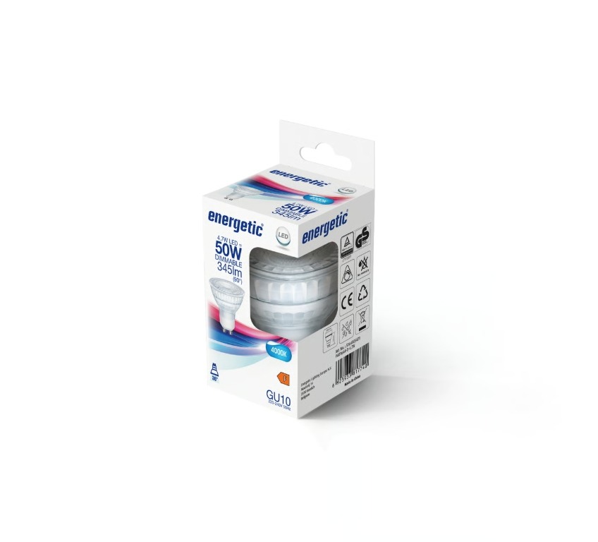 Ściemnialna żarówka GU10 PAR16 z przezroczystego szkła daje wyraźne białe światło 4000K. Kąt 36° ułatwia doświetlenie konkretnych miejsc, dlatego sprawdza się w spotach sufitowych i na szynach w kuchni przy blacie, w korytarzu, garderobie, domowym biurze oraz przy podświetlaniu półek i dekoracji.