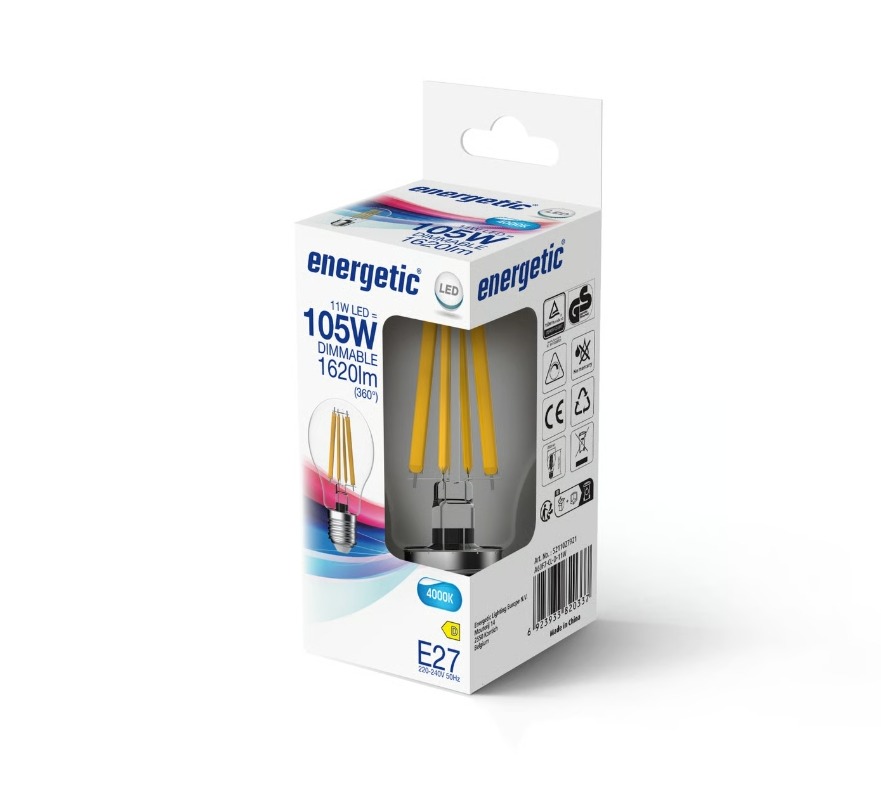 Przezroczysta żarówka Nordlux A60 z gwintem E27 o klasycznym kształcie. Neutralna barwa światła 4000 K zapewnia jasne i naturalne oświetlenie, dlatego dobrze sprawdza się w kuchni, biurze lub innych miejscach wymagających wyraźnego światła.