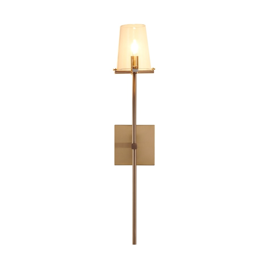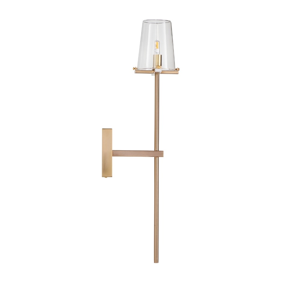 Elegancki kinkiet o wysokości 62 cm i złotym wykończeniu. Sprawdzi się w sypialni przy łóżku, obok lustra, w salonie, przedpokoju albo w reprezentacyjnym korytarzu. To propozycja także do hotelowych korytarzy, poczekalni i gabinetów, gdzie liczy się spokojne oświetlenie oraz dopracowany wygląd oprawy.