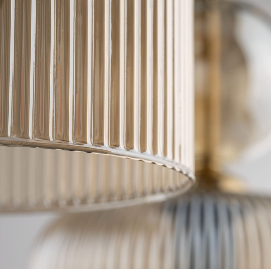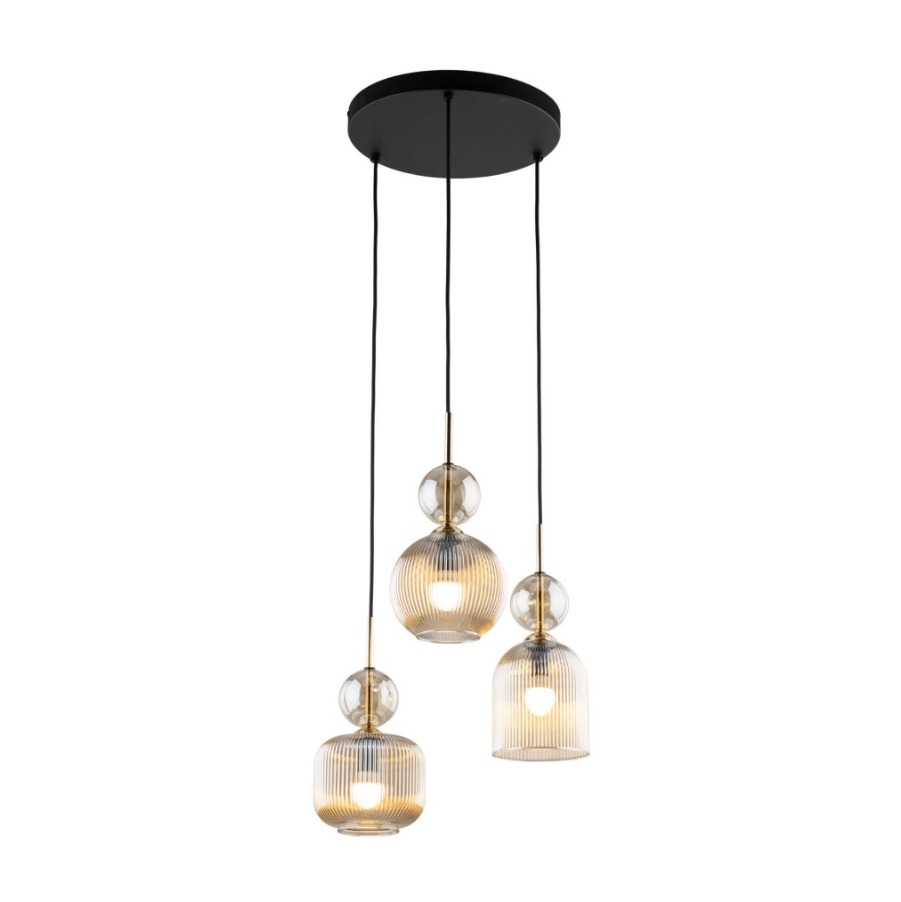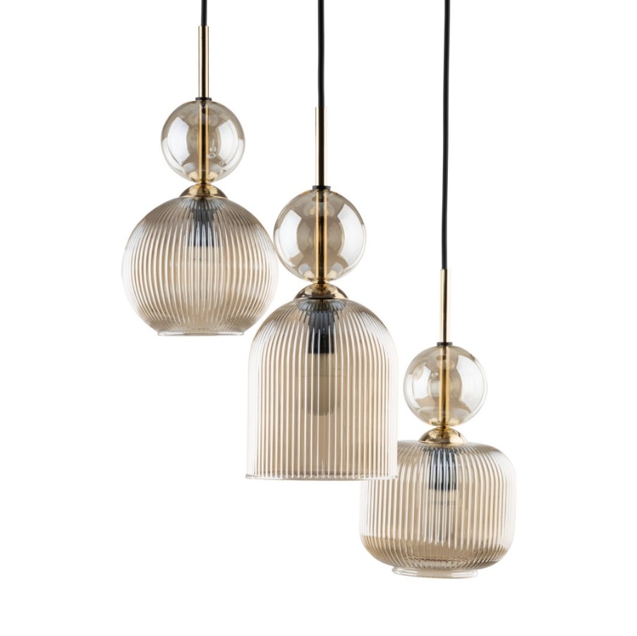 Zwis sufitowy Sophia Cognac 3 ociepla wnętrze ryflowanym szkłem w koniakowym odcieniu, które przyjemnie rozprasza światło. Trzy klosze zawieszone na przewodach układają się w zgrabną kompozycję, a czarna podsufitka nadaje całości nowoczesną elegancję. Świetnie sprawdzi się nad stołem, wyspą lub w strefie wypoczynku, gdy chcesz wprowadzić ciepły akcent bez przesady.