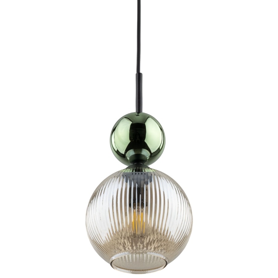 Lampa wisząca Sophia Cognac Green 15 wyróżnia się okrągłym, ryflowanym kloszem ze szkła w ciepłym odcieniu koniaku, który miękko rozprasza światło i buduje przytulny klimat. Zielony detal dodaje całości elegancji, a czarne wykończenie sprawia, że forma wygląda nowocześnie i lekko. Świetnie odnajdzie się jako pojedynczy punkt nad stolikiem, przy łóżku albo w ciągu kilku sztuk nad blatem.